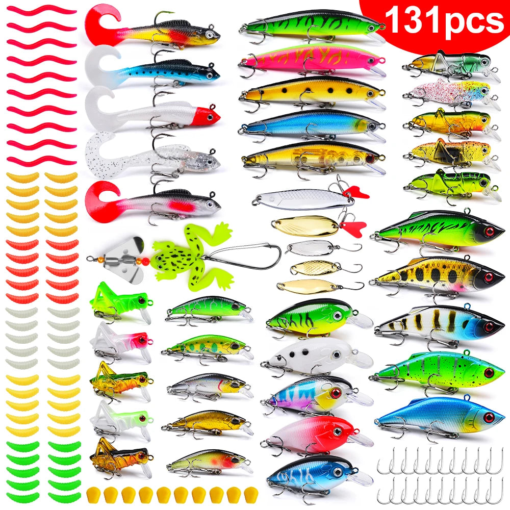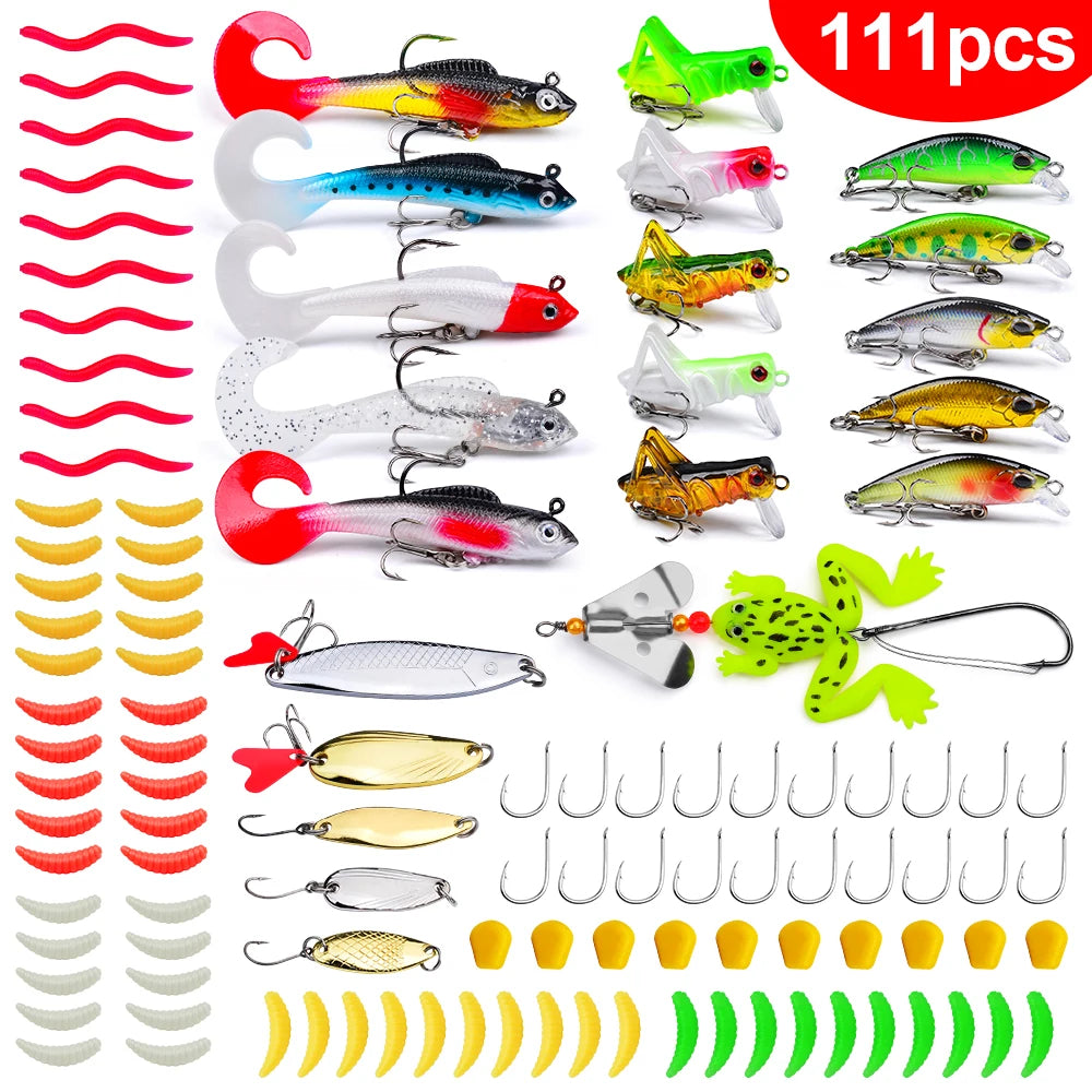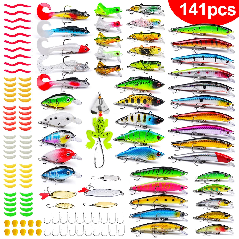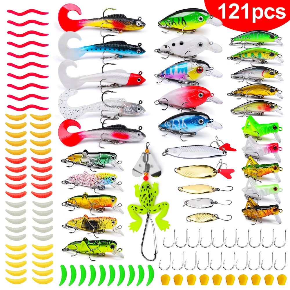 Fishing Tackle Set For Bass, Trout, Salmon, Soft Plastic Worm Bait, Wobbler Bait